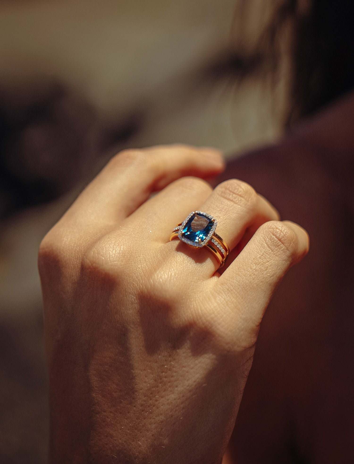 Les Intemporelles : 18K Gold with Blue Topaz and Dimond Ring